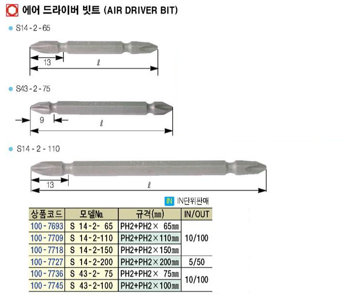 [½º¸¶Åä]¿¡¾î µå¶óÀ̹ö ºøÆ®(AIR DRIVER BIT) S 14-2- 65 ~ S 43-2-100