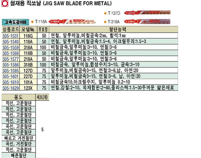 [bosch]öÀç¿ë Á÷½î³¯-°í¼Óµµ°­ HSS 118G~123X