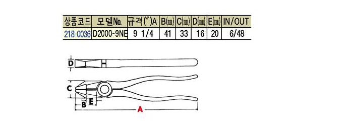 [KLEIN]°­¼±¿ë »«Ä¡ - Ư¼ö ¿­Ã³¸®(SIDE CUTTING PLOER) D2000-9NE