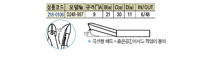 [KLEIN]°î¼±¿ë Çìµå´ÏÆÛ(DIAGONAL CUTTING PLIER WITH ANGLED HEAD) D248-9ST