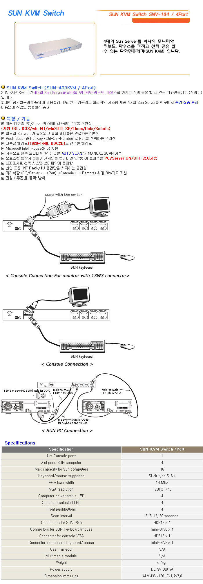 [½Ã½º¶óÀÎ] SUN KVM Switch SUN KVM Switch SNV-104 / 4Port