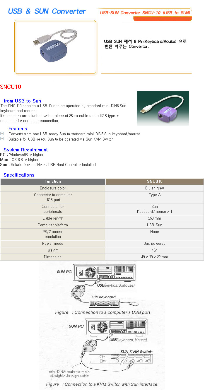 [½Ã½º¶óÀÎ] USB & SUN Converter USB-SUN Converter SNCU-10 (USB to SUN)=>Á¦Ç°´ÜÁ¾!