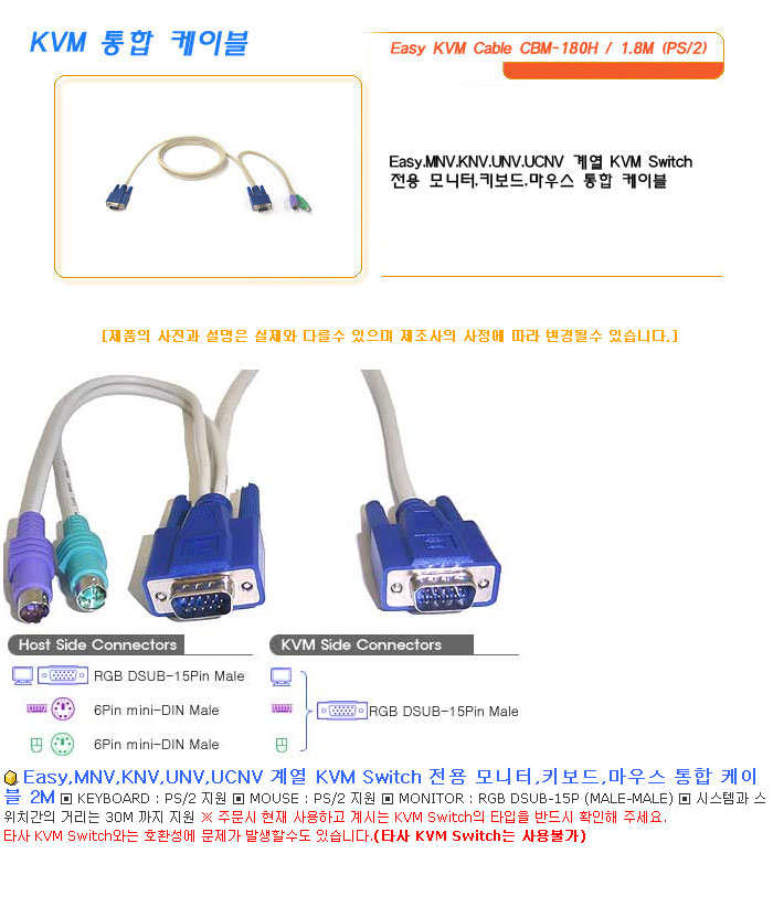 [½Ã½º¶óÀÎ] KVM ÅëÇÕ ÄÉÀ̺í Easy KVM Cable CBM-180H / 1.8M (PS/2)