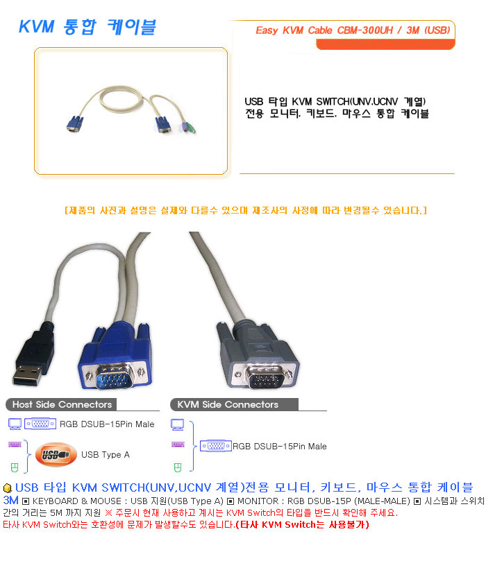[½Ã½º¶óÀÎ] KVM ÅëÇÕ ÄÉÀ̺í Easy KVM Cable CBD-300UH / 3M (USB)