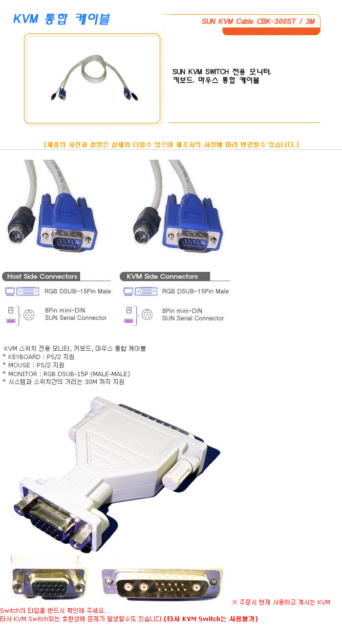 [½Ã½º¶óÀÎ] KVM ÅëÇÕ ÄÉÀ̺í SUN KVM Cable CBK-300ST / 3M
