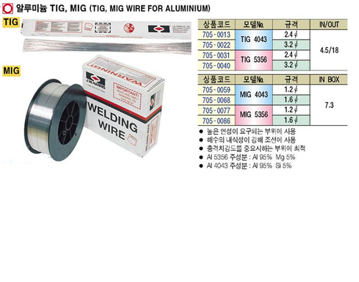 [JWÇØ¸®½º] ¾Ë·ç¹Ì´½ TIG, MIG - TIG 4043 2.4¥õ~MIG 5356 1.6¥õ-ÃÖ¼Ò´ÜÀ§ 4.5M
