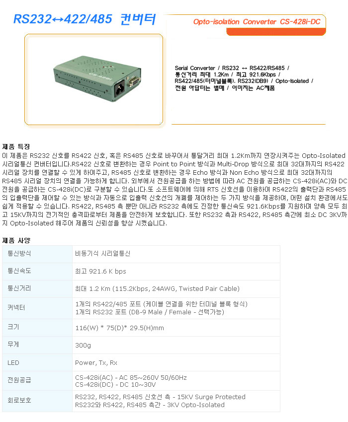 [½Ã½º¶óÀÎ] RS232¡ê422/485 ÄÁ¹öÅÍ Opto-isolation Converter CS-428i-DC