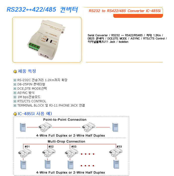 [½Ã½º¶óÀÎ] RS232¡ê422/485 ÄÁ¹öÅÍ RS232 to RS422/485 Converter IC-485Si=>Á¦Ç°´ÜÁ¾!