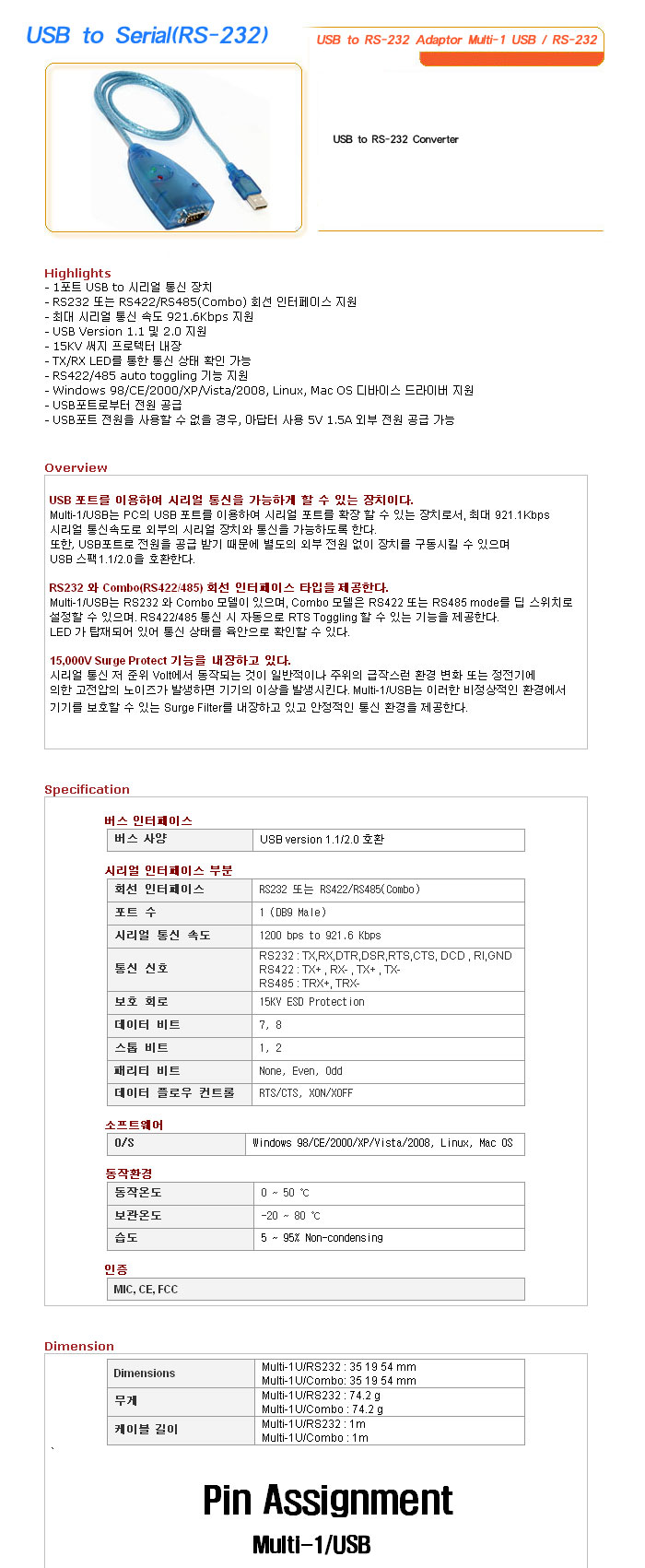 [½Ã½º¶óÀÎ] USB to Serial(RS-232) USB to RS-232 Adaptor Multi-1 USB / RS-232=>Á¦Ç°´ÜÁ¾!