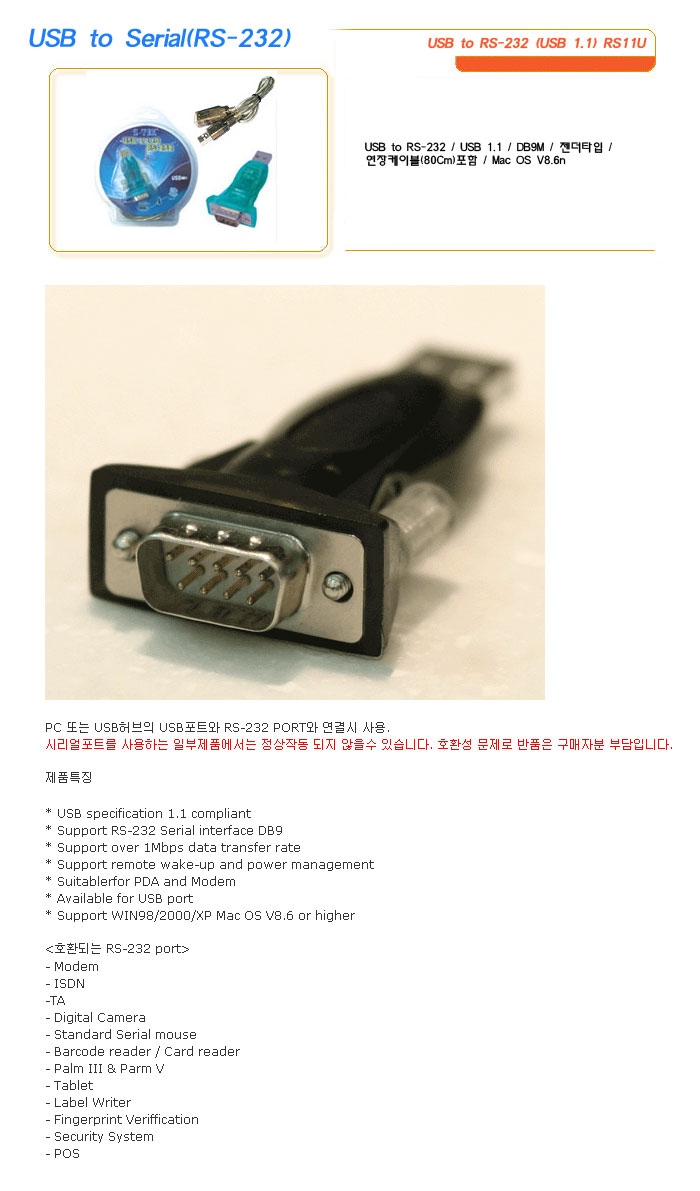 [½Ã½º¶óÀÎ] USB to Serial(RS-232) USB to RS-232 (USB 1.1) RS11U