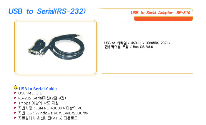 [½Ã½º¶óÀÎ] USB to Serial(RS-232) USB to Serial Adapter BF-810