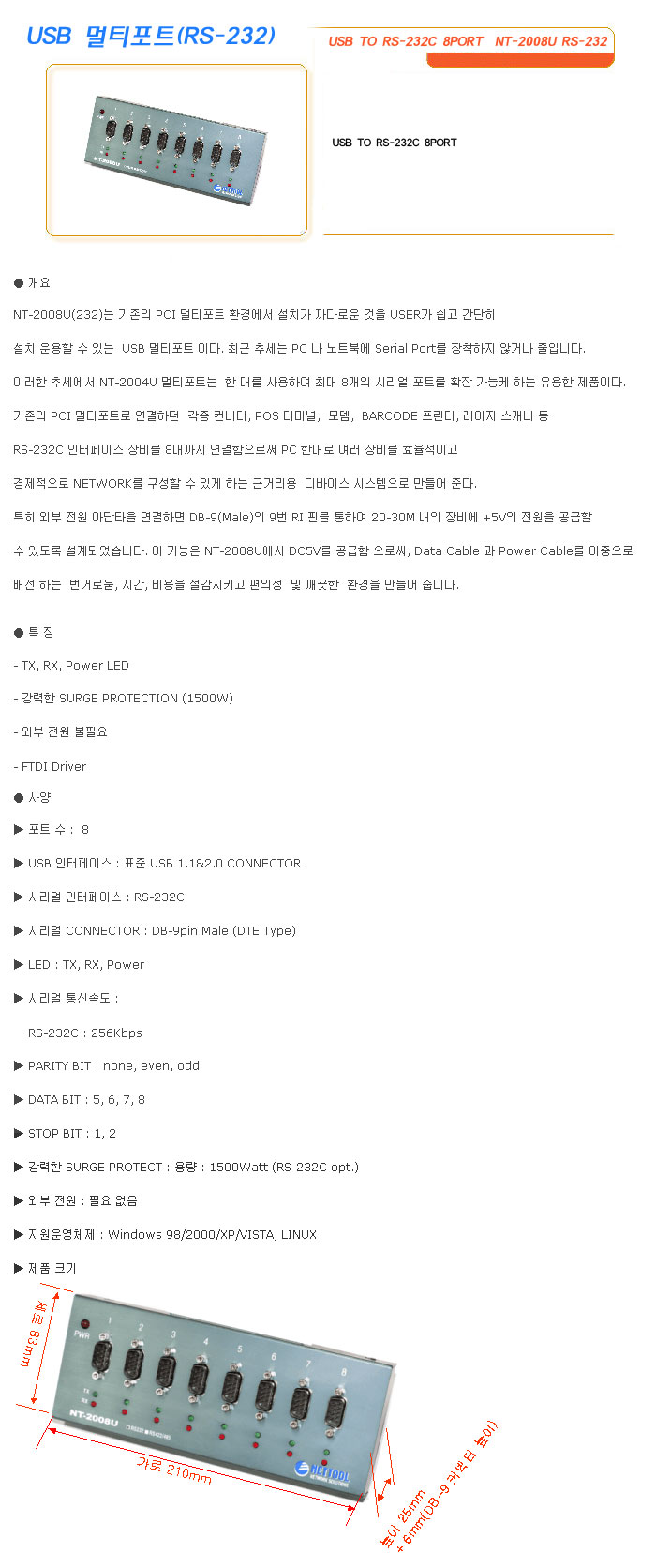 [½Ã½º¶óÀÎ] USB ¸ÖƼÆ÷Æ®(RS-232) USB TO RS-232C 8PORT NT-2008U RS-232