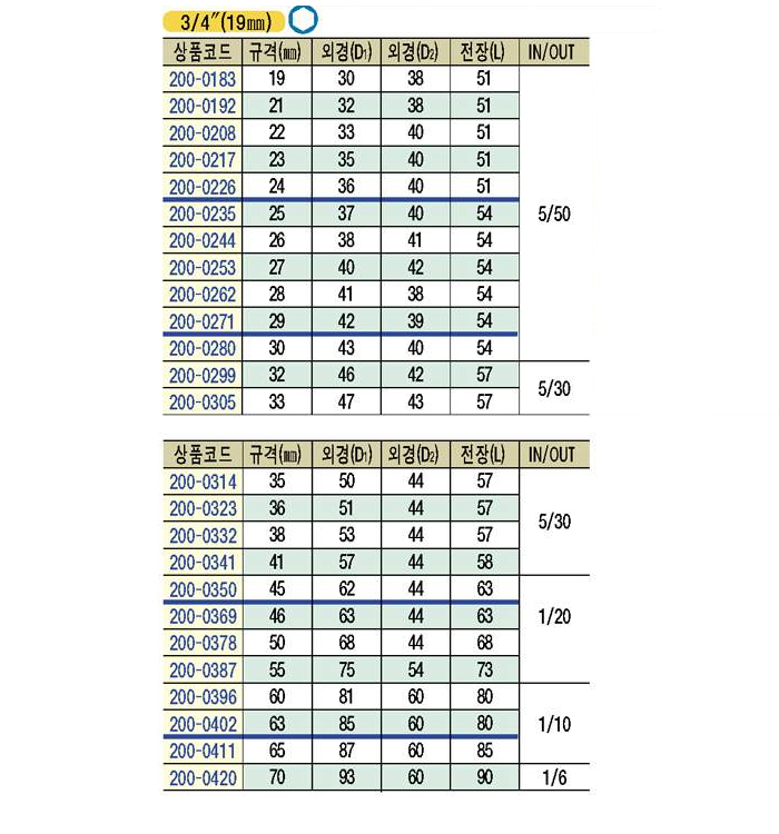 [GENIUS]ÇÚµå¼ÒÄÏ 3/4"(19mm)(HAND SOCKET) 30 mm ~ 50 mm