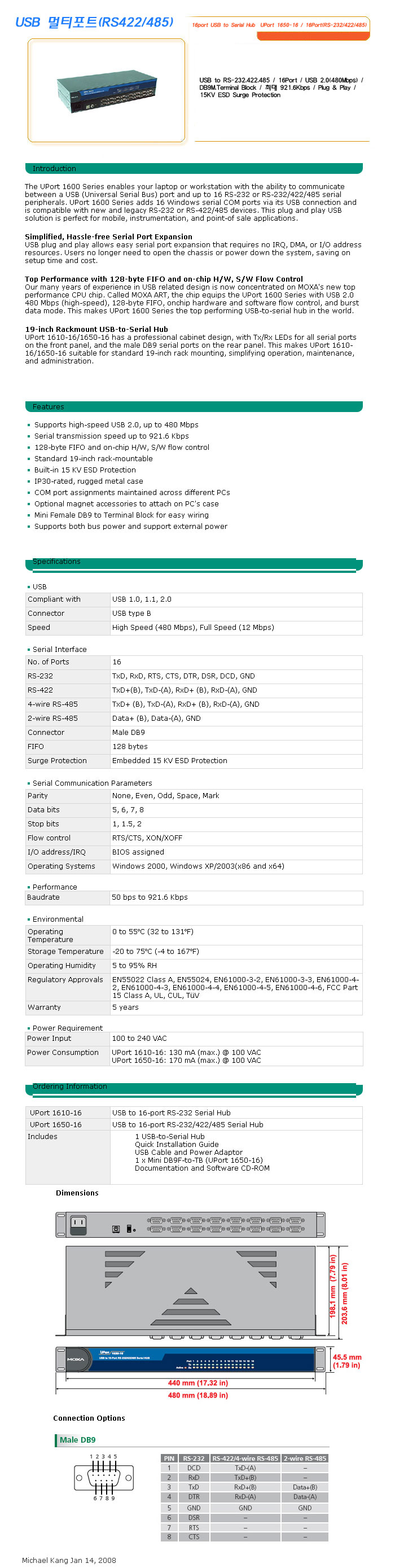 [½Ã½º¶óÀÎ] B ¸ÖƼÆ÷Æ®(RS422/485) 16port USB to Serial Hub UPort 1650-16 / 16Port(RS-232/422/485)