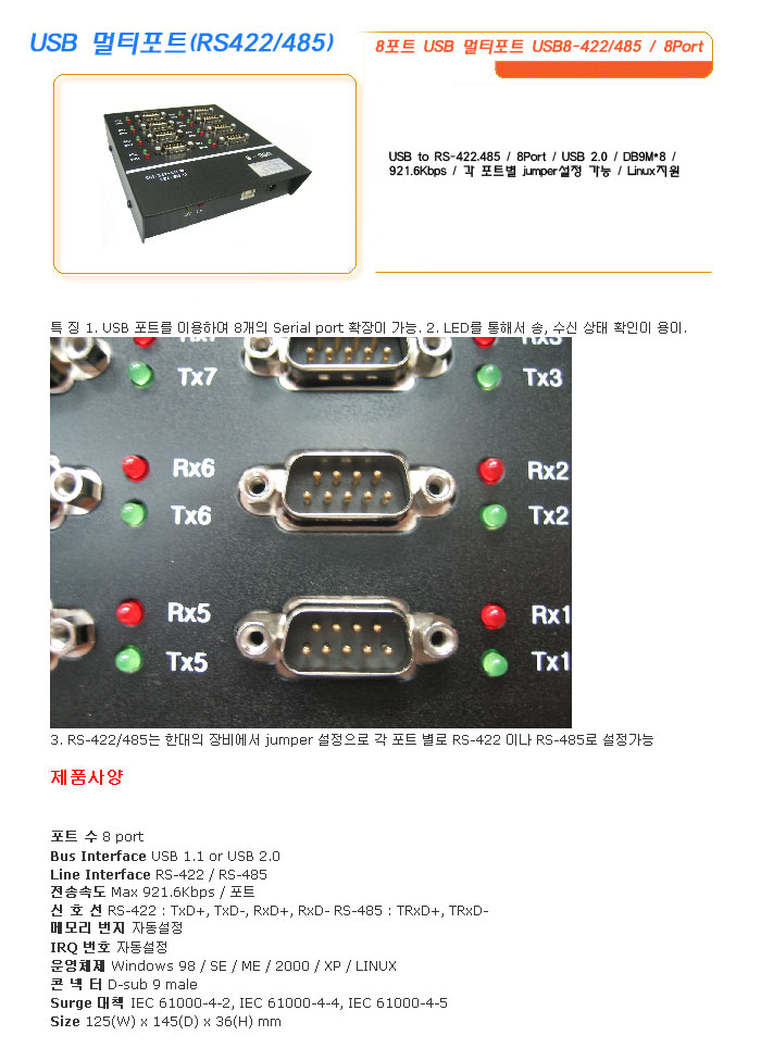 [½Ã½º¶óÀÎ] B ¸ÖƼÆ÷Æ®(RS422/485) 8Æ÷Æ® USB ¸ÖƼÆ÷Æ® USB8-422/485 / 8Port