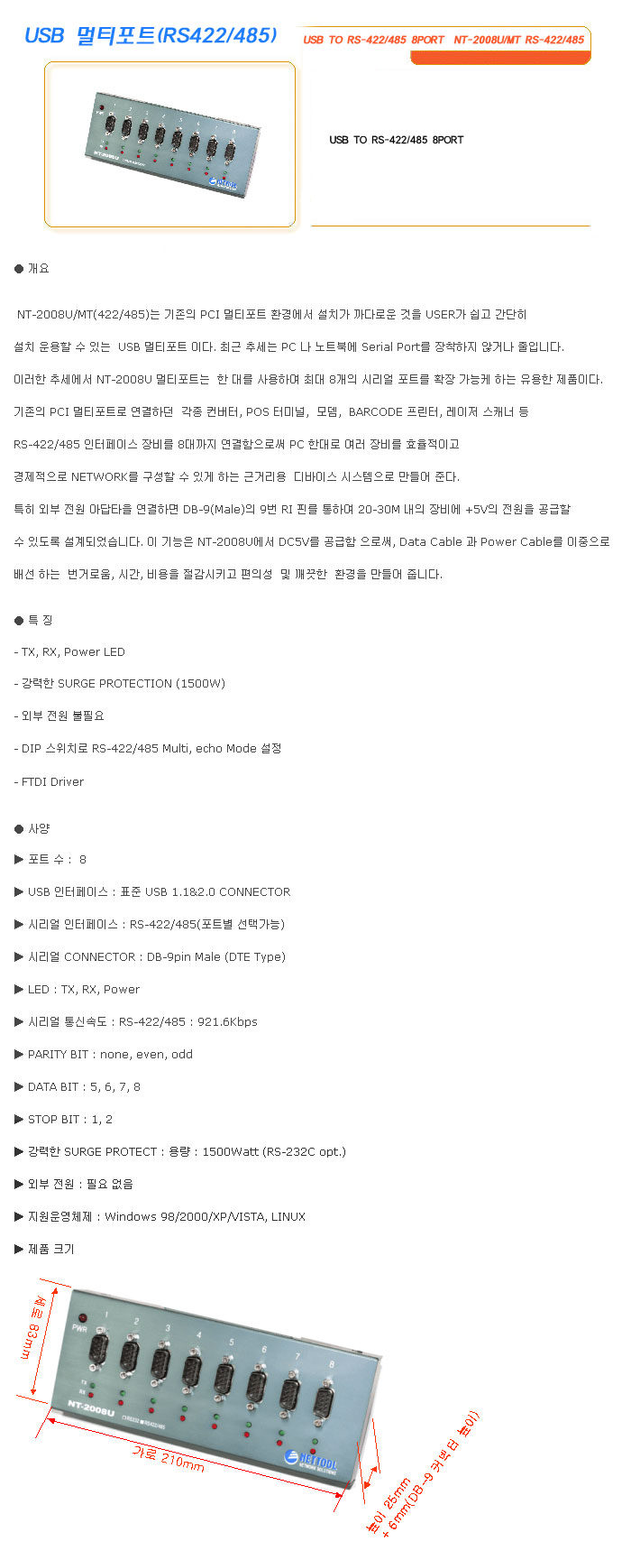 [½Ã½º¶óÀÎ] B ¸ÖƼÆ÷Æ®(RS422/485) USB TO RS-422/485 8PORT NT-2008U/MT RS-422/485