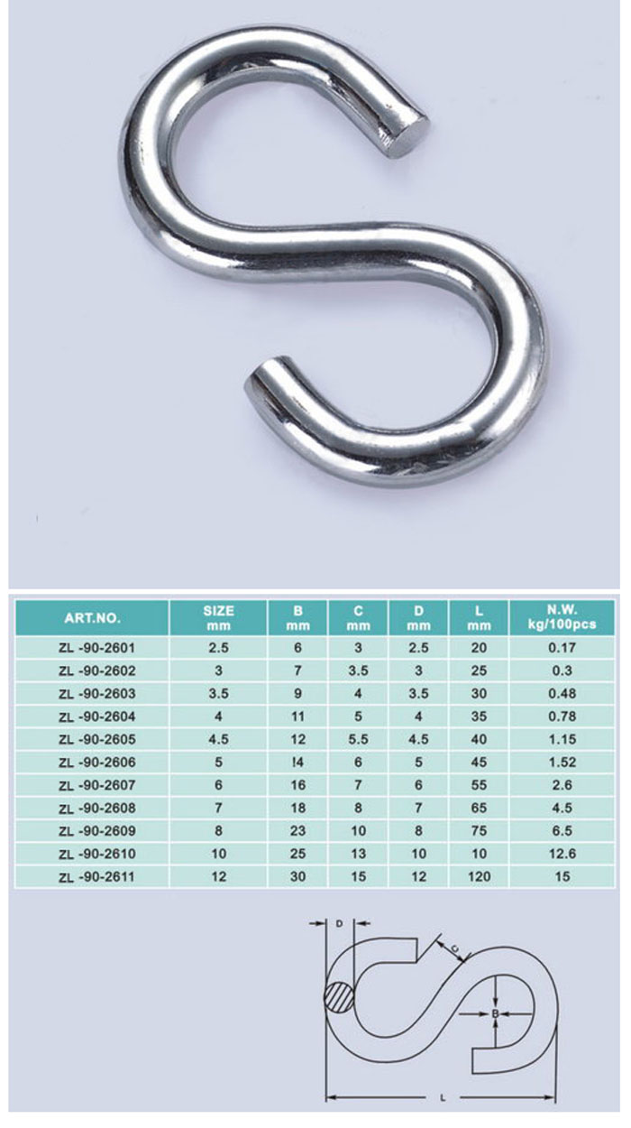 [ZHELI]S-HOOK(ZINC PLATED) ZL-90(¼öÀÔÁ¦Ç°=>´ë·®±¸¸Å¸¸ °¡´É)