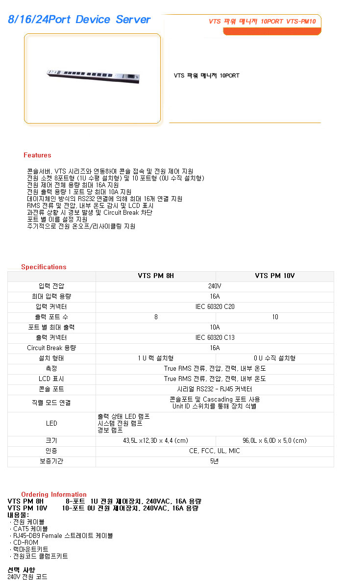 [½Ã½º¶óÀÎ] 8/16/24Port Device Server VTS ÆÄ¿ö ¸Å´ÏÀú 10PORT VTS-PM10