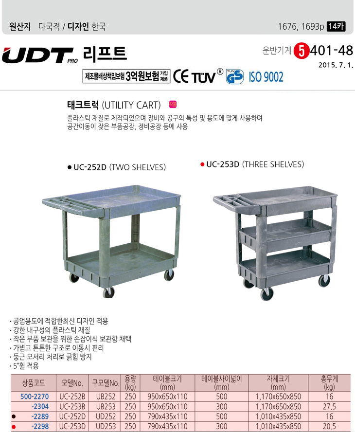 [UDT] ÅÂũƮ·°/µ¥Å©Æ®·°(UC-252B UD252 950x650x110mm 2´Ü, 5ÀÎÄ¡ ¹ÙÄû, ºÎǰ°øÀå/Á¤ºñ°øÀå °ø¾÷¿ë/»ê¾÷¿ë ÇÃ¶ó½ºÆ½ µ¥Å©Æ®·°)(Utility Cart)=>