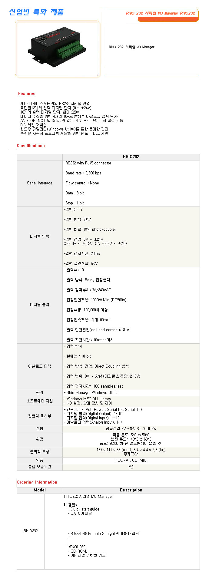 [½Ã½º¶óÀÎ] »ê¾÷º° Ưȭ Á¦Ç° RHIO 232 ½Ã¸®¾ó I/O Manager RHIO232