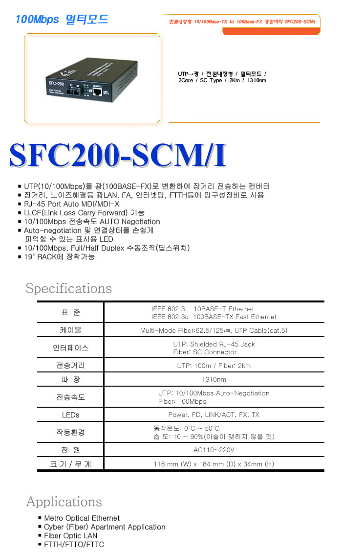 [½Ã½º¶óÀÎ] 100Mbps ¸ÖƼ¸ðµå Àü¿ø³»ÀåÇü 10/100Base-TX to 100Base-FX ±¤ÄÁ¹öÅÍ SFC200-SCM/i
