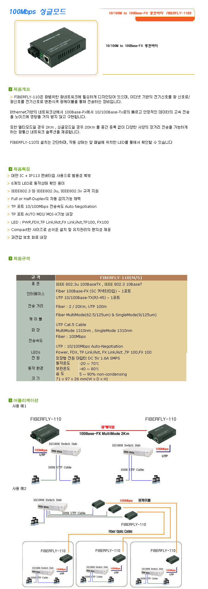 [½Ã½º¶óÀÎ] 100Mbps ¸ÖƼ¸ðµå 10/100M to 100Base-FX ±¤ÄÁ¹öÅÍ FIBERFLY-110S