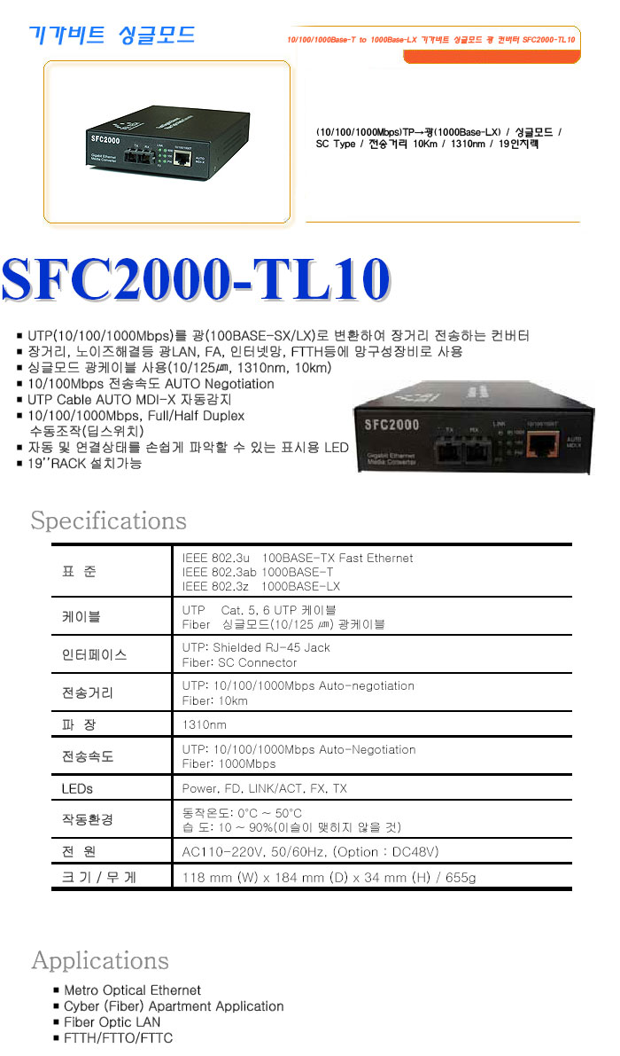 [½Ã½º¶óÀÎ] ±â°¡ºñÆ® ¸ÖƼ¸ðµå 10/100/1000Base-T to 1000Base-LX ±â°¡ºñÆ® ½Ì±Û¸ðµå ±¤ ÄÁ¹öÅÍ SFC2000-TL10