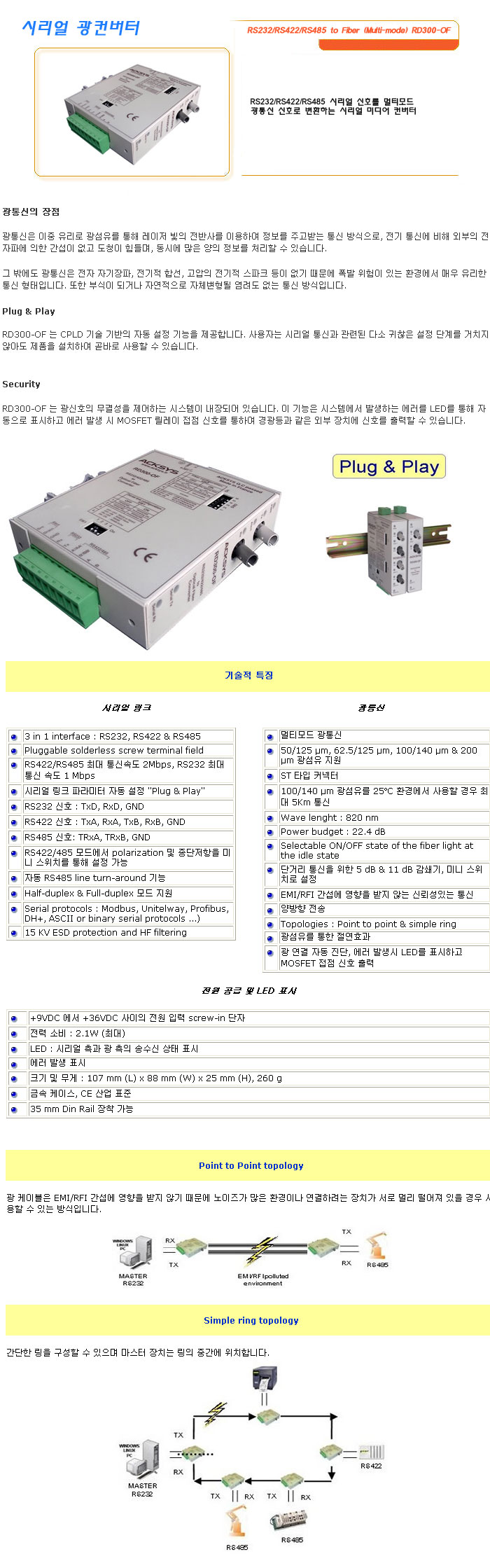 [½Ã½º¶óÀÎ] ½Ã¸®¾ó ±¤ÄÁ¹öÅÍ RS232/RS422/RS485 to Fiber (Multi-mode) RD300-OF (°¡°Ý¹®ÀÇ)