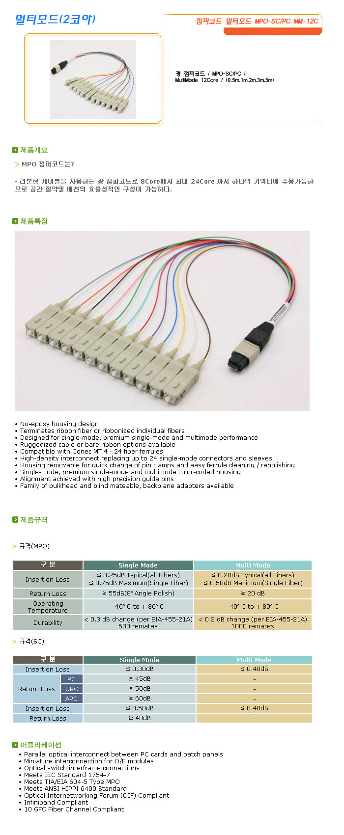 [½Ã½º¶óÀÎ] ¸ÖƼ¸ðµå(2ÄÚ¾Æ) Á¡ÆÛÄÚµå ¸ÖÆ¼¸ðµå MPO-SC/PC MM-12C