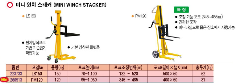[UDT] PM120 ¹Ì´Ï À©Ä¡½ºÅ×Ä¿ (MINI WINCH STACKER)(ºÎÇÏÁß·® 120Kg)=>Á¦Ç°´ÜÁ¾!