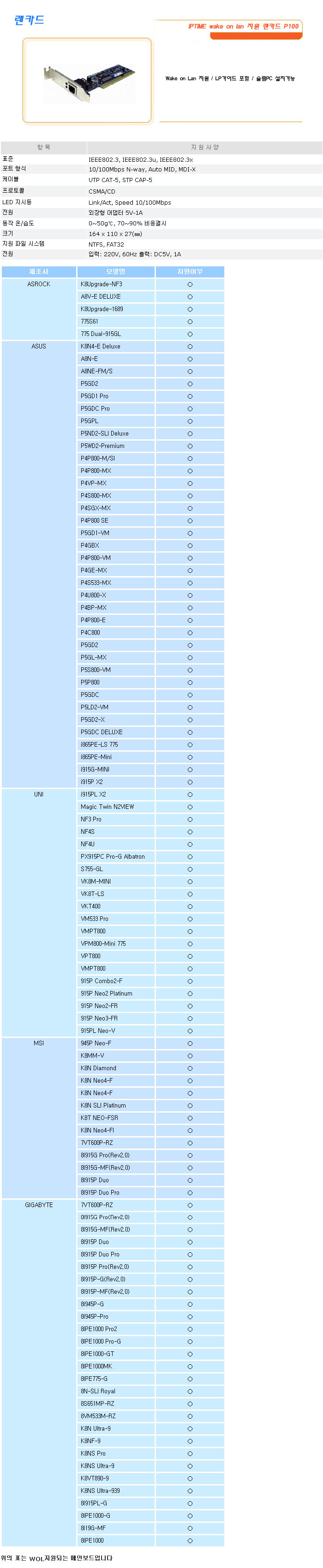 [SL] IPTIME wake on lan Áö¿ø ·£Ä«µå P100