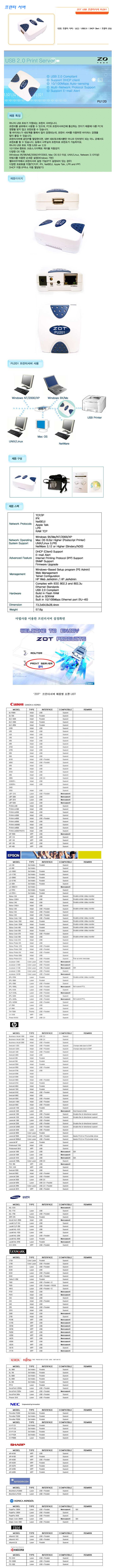 [SL] ZOT USB ÇÁ¸°Åͼ­¹ö PU201