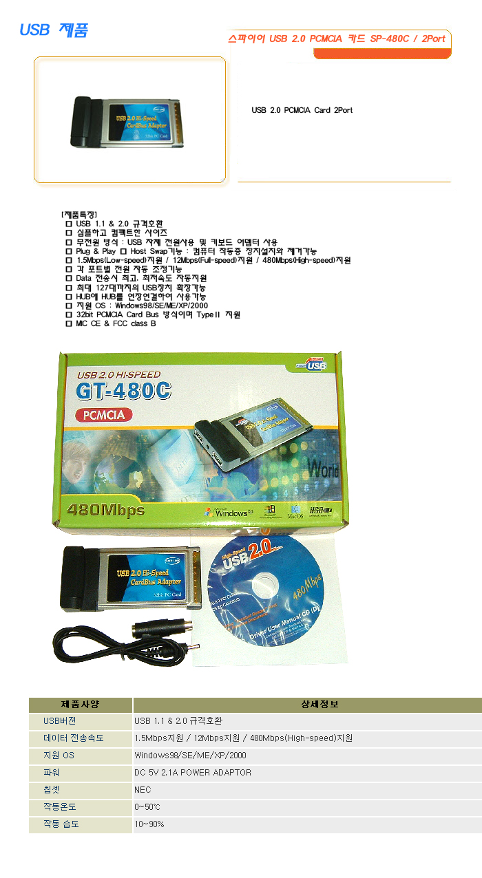 [SL] ½ºÆÄÀ̾î USB 2.0 PCMCIA Ä«µå SP-480C / 2Port