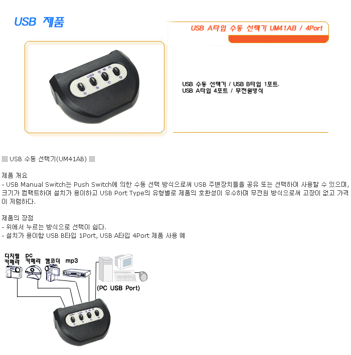 [SL] USB AŸÀÔ ¼öµ¿ ¼±Åñâ UM41AB / 4Port