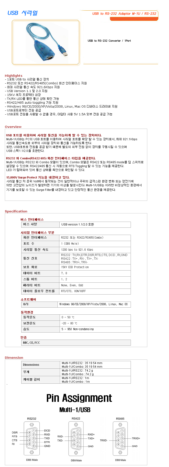 [SL] USB to RS-232 Adaptor M-1U / RS-232