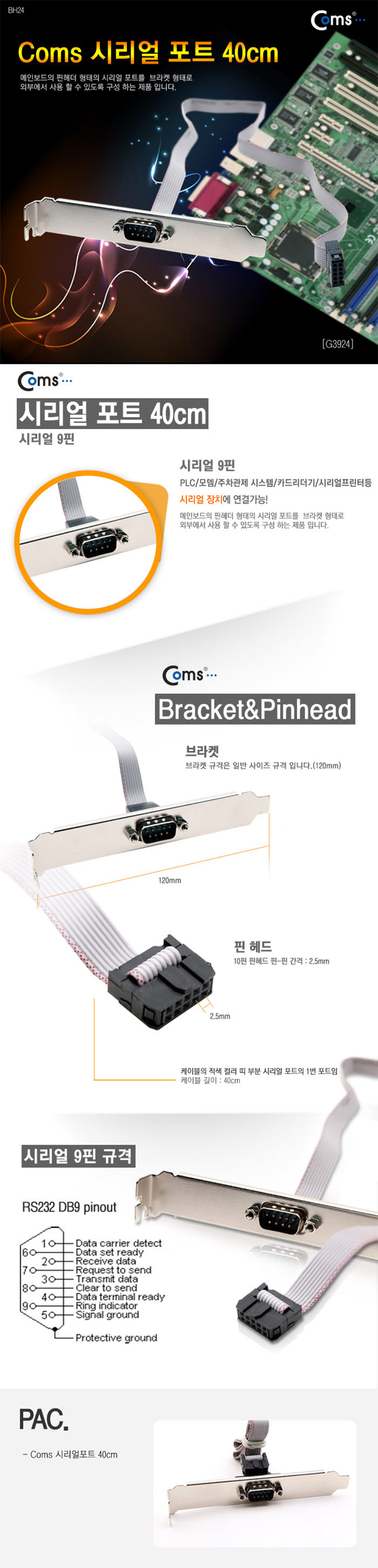 [COMS] ½Ã¸®¾ó Æ÷Æ® 9ÇÉ, 1Port/40cm(G3924, 9Pin, 40¼¾Æ¼)