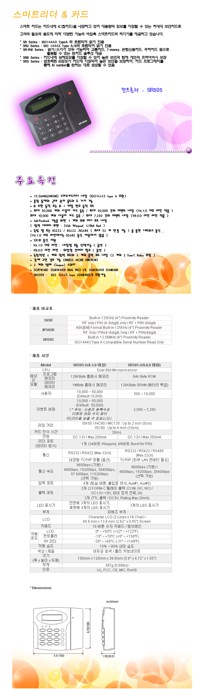 [ID] SR505(13.56MHz RF + ºñ¹Ð¹øÈ£)(µ¶¸³Çü ÄÁÆ®·Ñ·¯)(ÃâÀÔÅëÁ¦ ¹× ±ÙŰü¸®)
