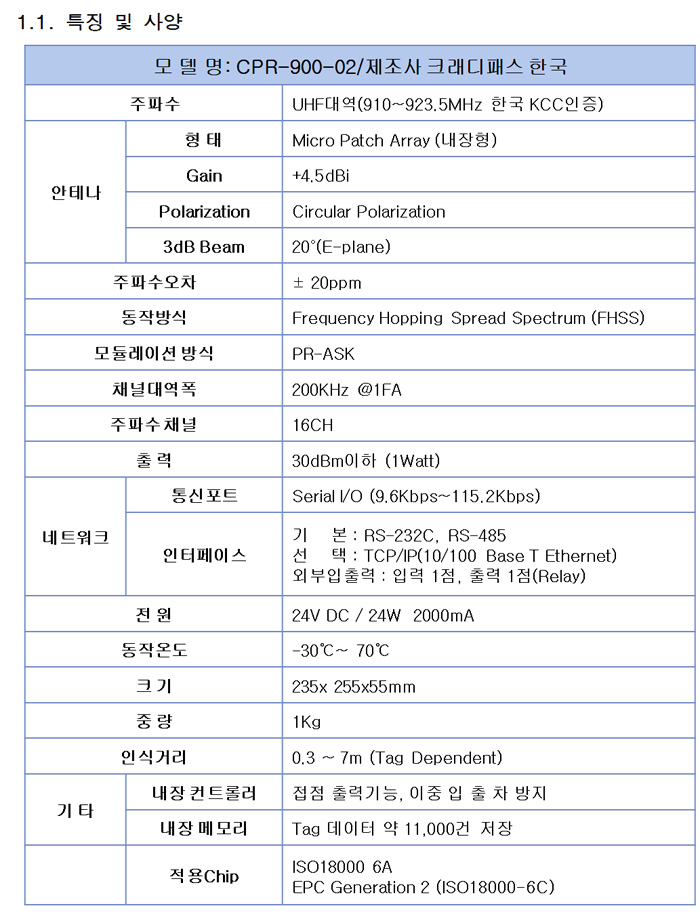 [CR] 900MHz RFID/USN¿ë ¸®´õ(Àå°Å¸®¿ë)(ÀÎÁõ¹øÈ£:CPR-900-02/CPR-302A)