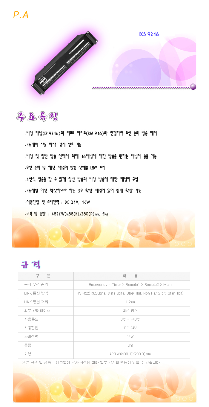 [ÀÎÅÍ¿¥] P.A ECS-9216