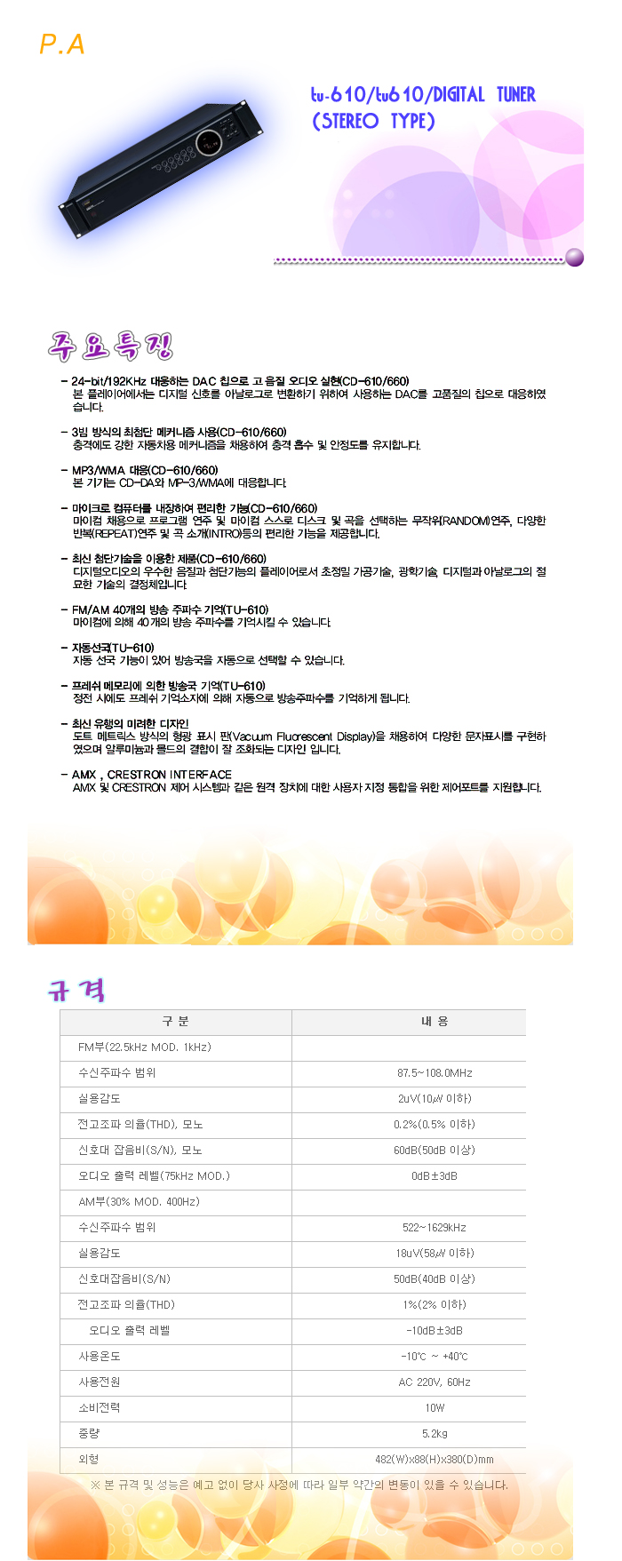 [ÀÎÅÍ¿¥] P.A tu-610/tu610/DIGITAL TUNER