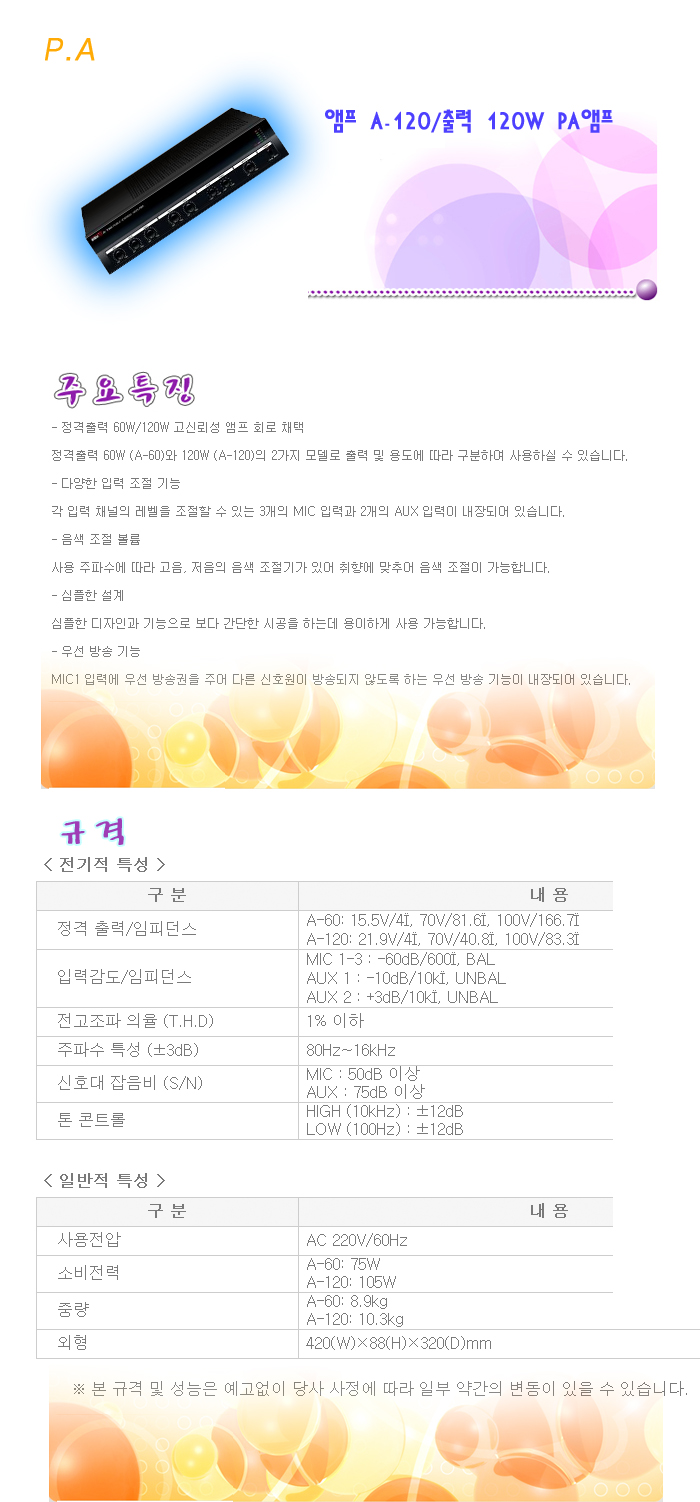[ÀÎÅÍ¿¥] P.A ¾ÚÇÁ A-120/Ãâ·Â 120W PA¾ÚÇÁ