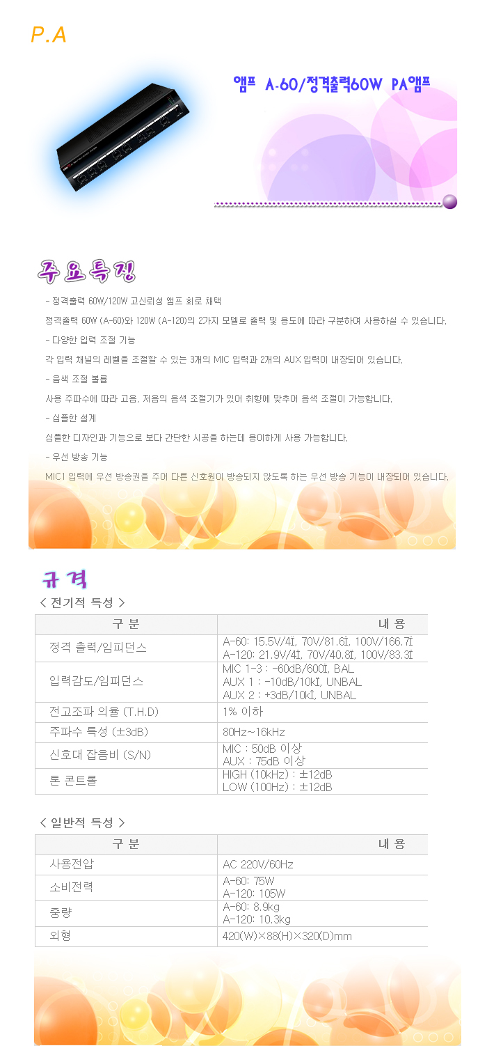 [ÀÎÅÍ¿¥] P.A ¾ÚÇÁ A-60/Á¤°ÝÃâ·Â60W PA¾ÚÇÁ