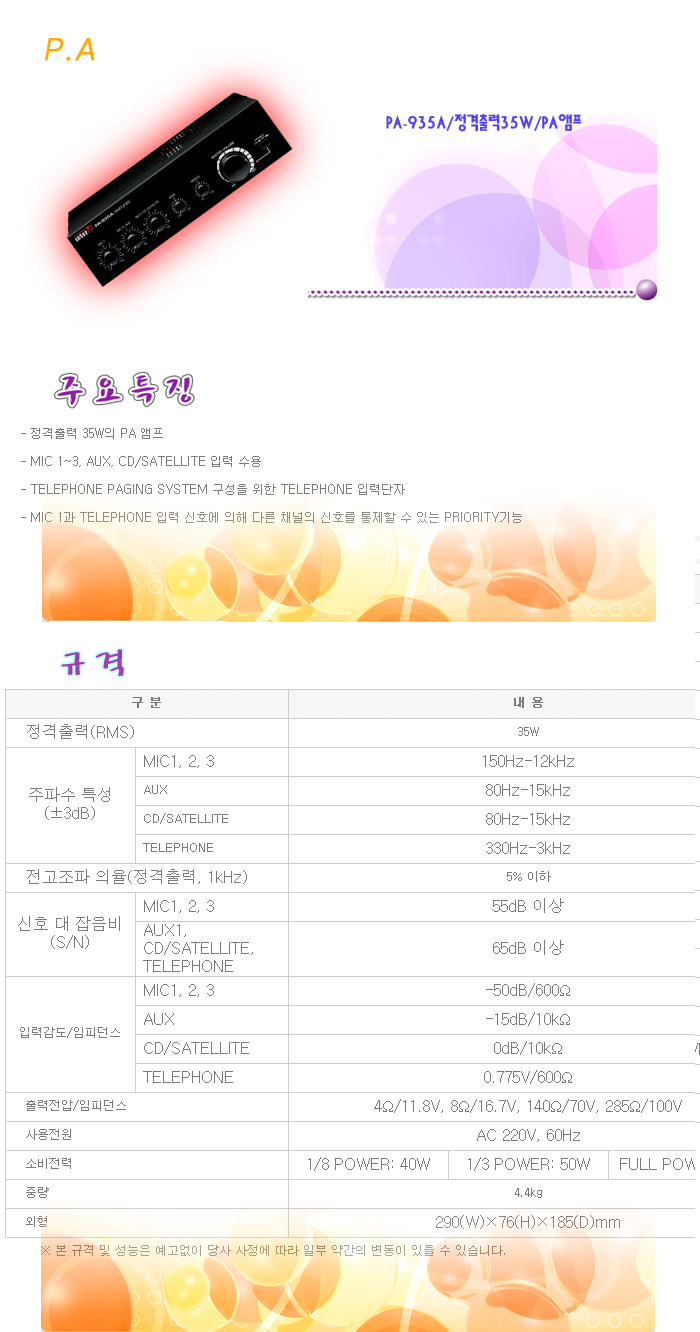 [ÀÎÅÍ¿¥] P.A PA-935A/Á¤°ÝÃâ·Â35W/PA¾ÚÇÁ