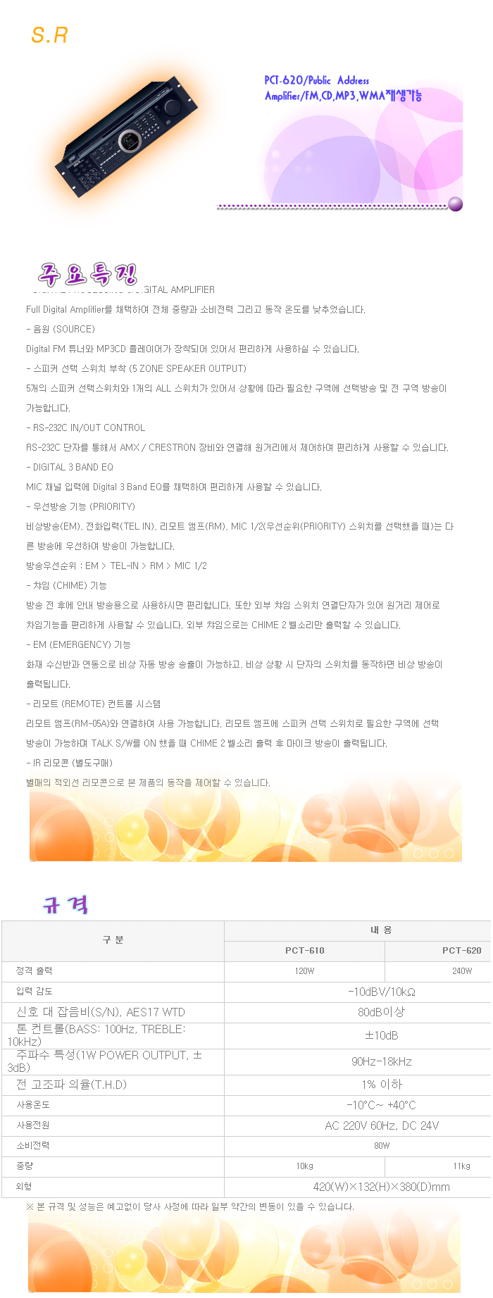 [ÀÎÅÍ¿¥] S.R PCT-620/Public Address Amplifier/FM,CD,MP3,WMAÀç»ý°¡´É