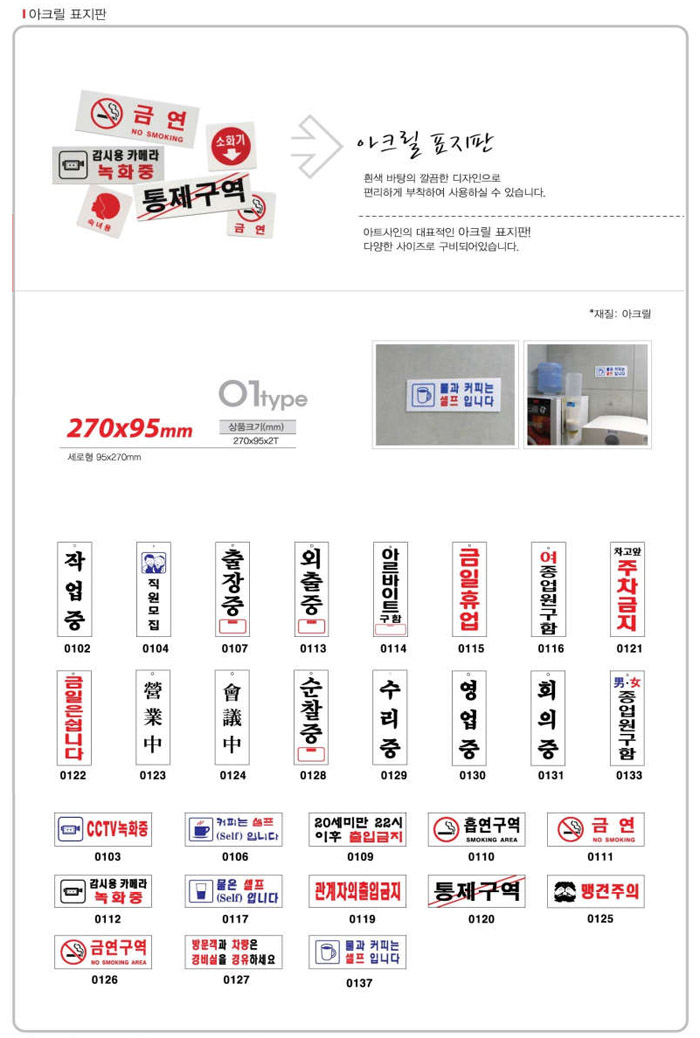 [¾ÆÆ®]¾ÆÅ©¸±Ç¥ÁöÆÇ(270mm X 95mm)Â÷°í¾ÕÁÖÂ÷±ÝÁö 0121