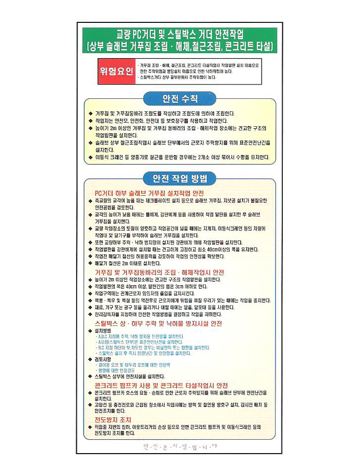 [´ë¼º]°øÁ¤º° ¾ÈÀüÀÛ¾÷Ç¥ÁöÆÇ/°øÁ¤º° ¾ÈÀüÀÛ¾÷¼öÄ¢(±³·® P.C°Å´õ ¹× ½ºÆ¿¹Ú½º °Å´õ ¾ÈÀüÀÛ¾÷)¾ÈÀü 22094