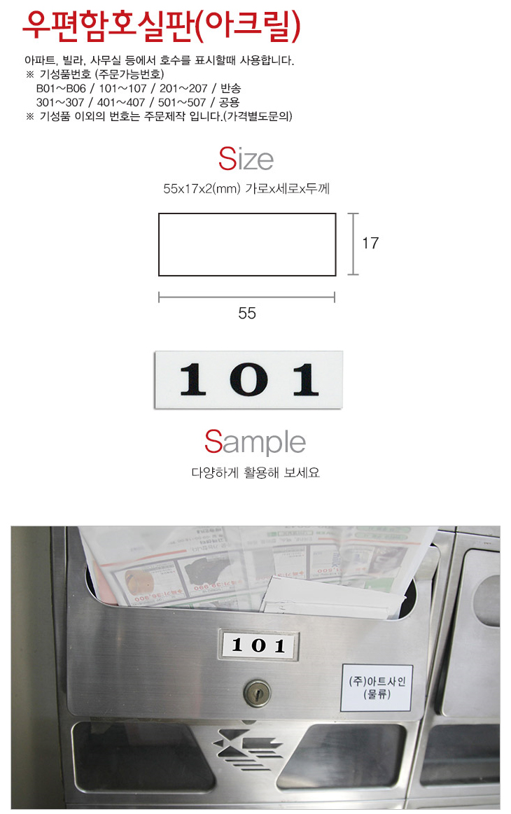 [AT] ¿ìÆíÇÔÈ£½ÇÆÇ(¾ÆÅ©¸±, 55x17mm 2.0T , ¾ÆÆÄÆ®/ºô¶ó/»ç¹«½Ç ¿ìÆíÇÔ¹øÈ£)