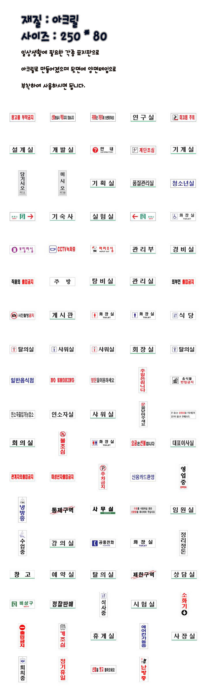 [¾ÆÆ®] ¾ÆÅ©¸± Ç¥ÁöÆÇ(250mm X 80mm)[NO SMOKING 0242]
