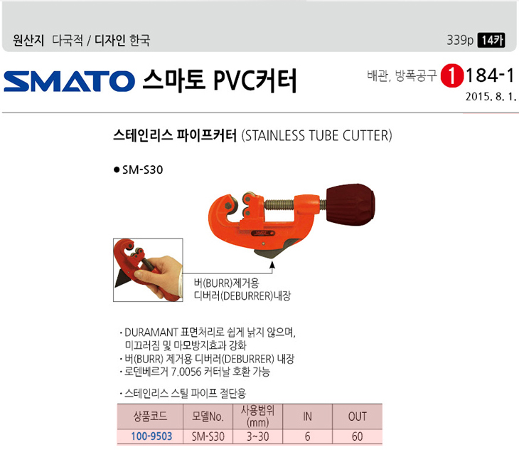 [SMATO] ½ºÅÙ ÆÄÀÌÇÁÄ¿ÅÍ/½ºÅ×Àθ®½º ÆÄÀÌÇÁıŸ(SM-S30, ¹üÀ§:3~30mm, ½ºÅÙ·¹½º ÆÄÀÌÇÁÀý´Ü±â)(Stainless Tube Cutter)