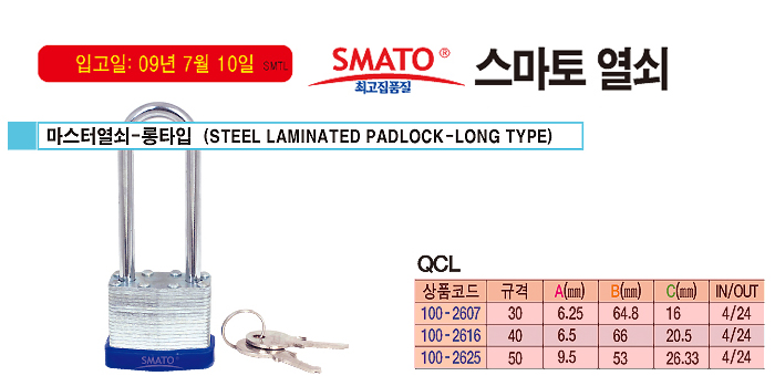 [SMATO] ¸¶½ºÅÍ¿­¼è-·ÕŸÀÔ (STEEL LAMINATED PADLOCK-LONG TYPE)(4°³¼¼Æ®)